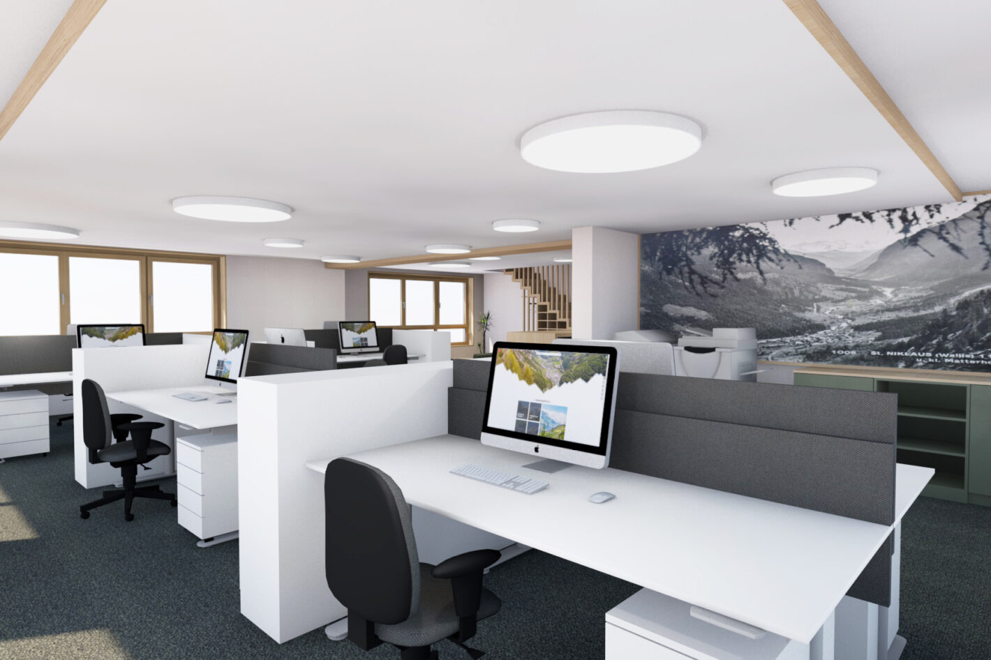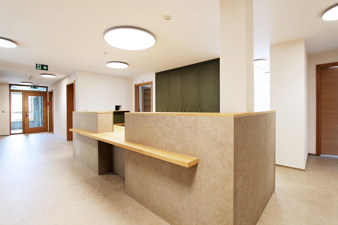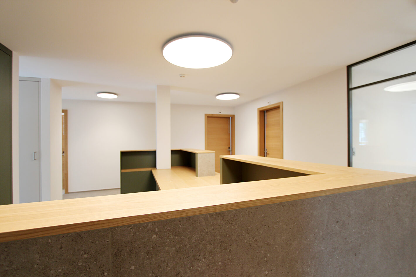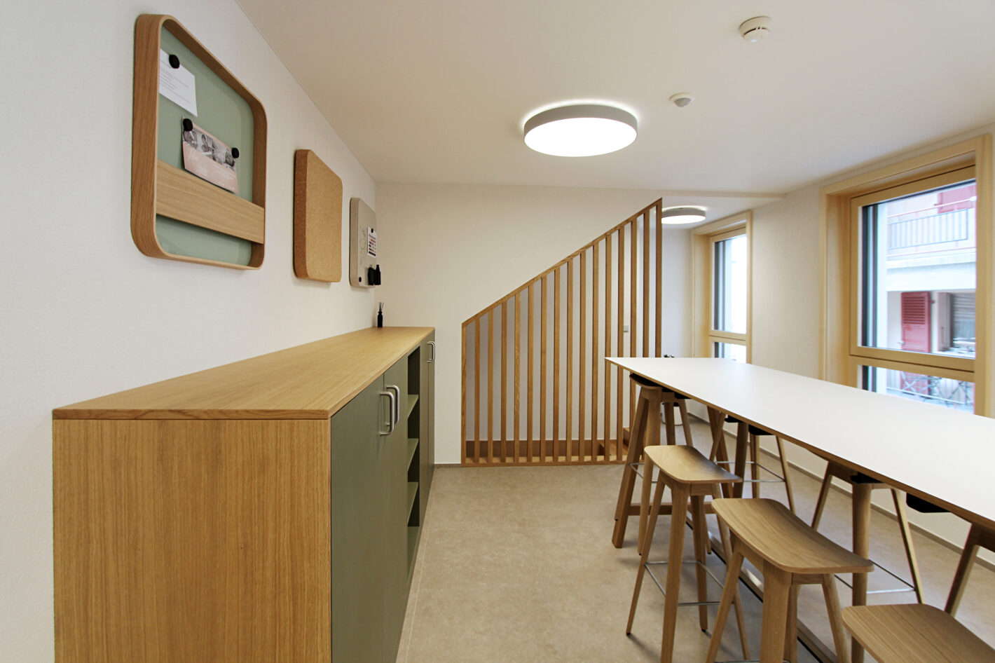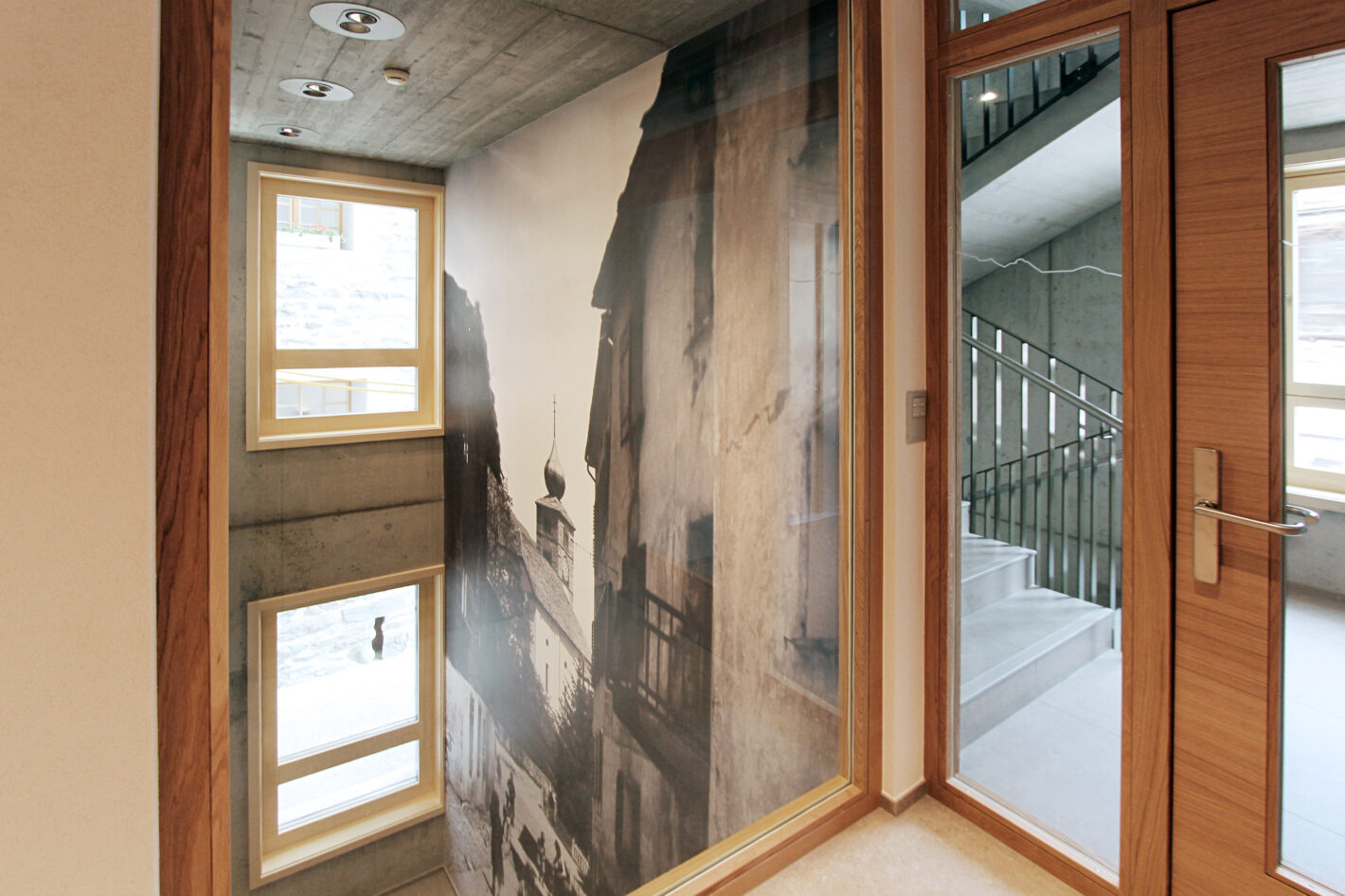 Das alte Gemeindehaus der Gemeinde St. Niklaus stand seit einiger Zeit leer und wurde nicht mehr genutzt. Dies wollte die Gemeinde ändern. Das Gebäude wurde bis auf die Grundmauern abgerissen und in den gleichen Dimensionen wieder neu aufgebaut. Der Stil des Hauses wurde bewahrt und der Charakter beibehalten. In Zusammenarbeit mit Architekturdienste haben wir dem ehrwürdigen Haus neues Leben eingehaucht. Das mehrgeschossige Haus wird unterschiedlich genutzt. Das Untergeschoss wird als Einstellhalle genutzt. Im Erdgeschoss sowie ein Teil im 1. Obergeschoss hat die Gemeindeverwaltung sich neu eingerichtet. Im 1. und 2. Obergeschoss ist die KITA und der Mittagstisch eingezogen. Das dritte Obergeschoss dient als Praxis. Im Dachgeschoss sind zwei Sitzungszimmer untergebracht. Das Konzept zieht sich mehrheitlich von unten bis oben durch. Natürliche Materialien, sanfte Farben und viel Licht sorgen für ein angenehmes Raumgefühl.