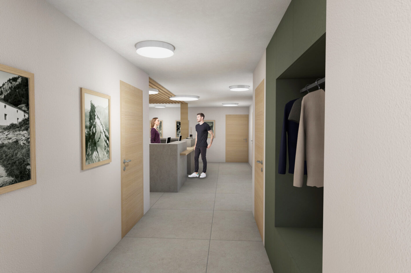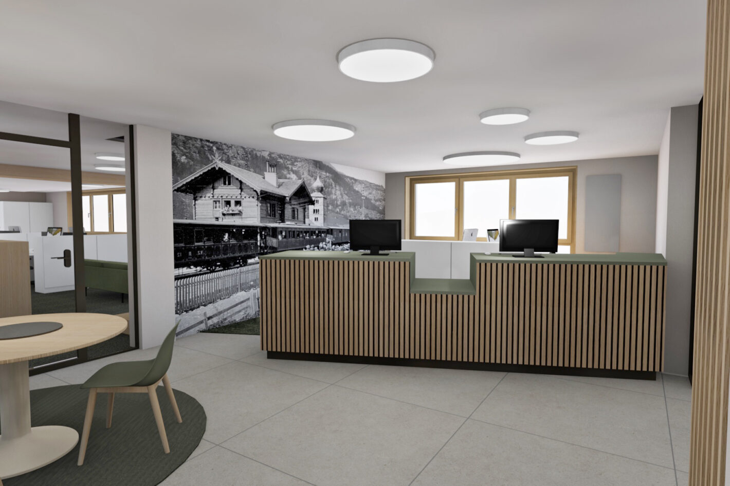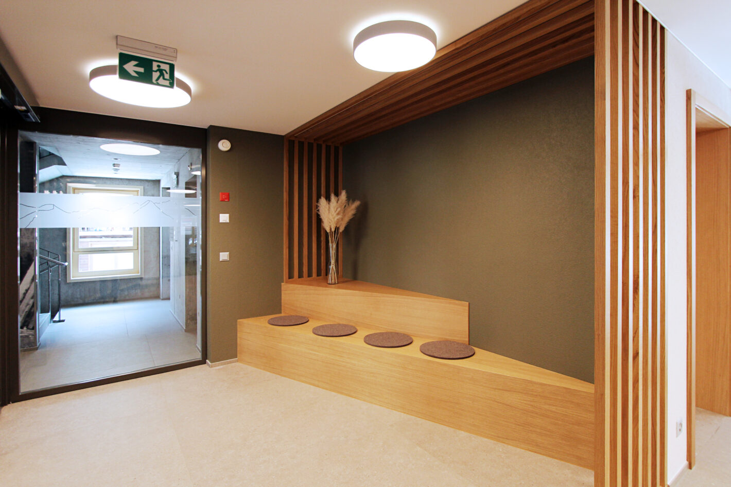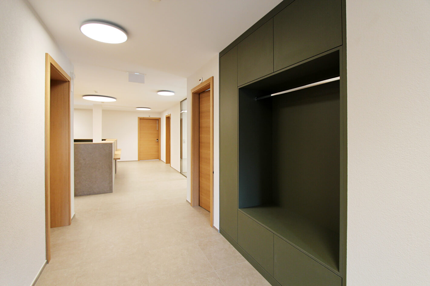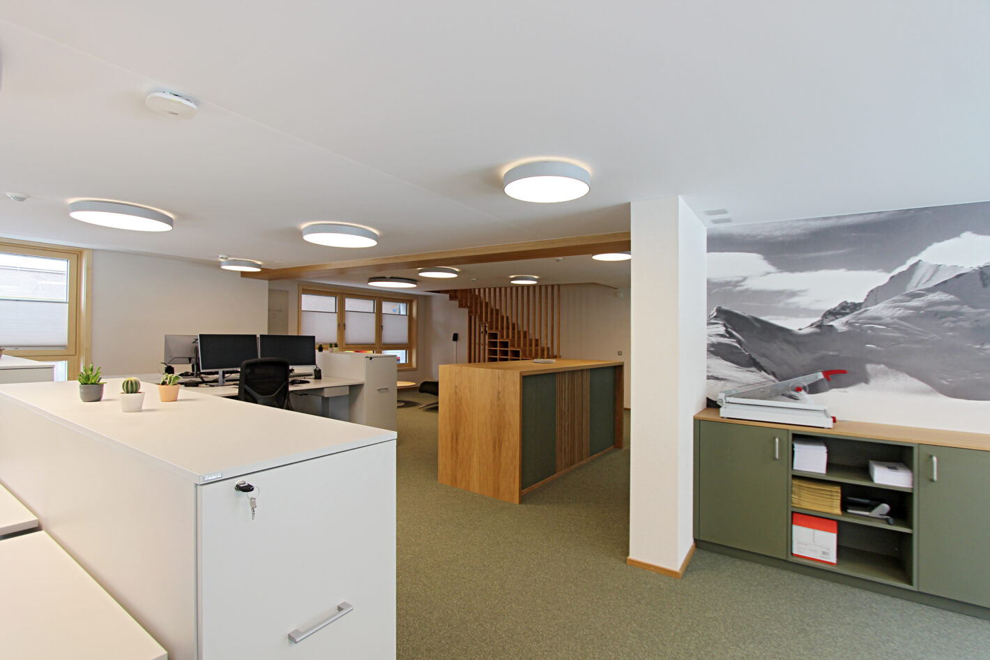 Das alte Gemeindehaus der Gemeinde St. Niklaus stand seit einiger Zeit leer und wurde nicht mehr genutzt. Dies wollte die Gemeinde ändern. Das Gebäude wurde bis auf die Grundmauern abgerissen und in den gleichen Dimensionen wieder neu aufgebaut. Der Stil des Hauses wurde bewahrt und der Charakter beibehalten. In Zusammenarbeit mit Architekturdienste haben wir dem ehrwürdigen Haus neues Leben eingehaucht. Das mehrgeschossige Haus wird unterschiedlich genutzt. Das Untergeschoss wird als Einstellhalle genutzt. Im Erdgeschoss sowie ein Teil im 1. Obergeschoss hat die Gemeindeverwaltung sich neu eingerichtet. Im 1. und 2. Obergeschoss ist die KITA und der Mittagstisch eingezogen. Das dritte Obergeschoss dient als Praxis. Im Dachgeschoss sind zwei Sitzungszimmer untergebracht. Das Konzept zieht sich mehrheitlich von unten bis oben durch. Natürliche Materialien, sanfte Farben und viel Licht sorgen für ein angenehmes Raumgefühl.