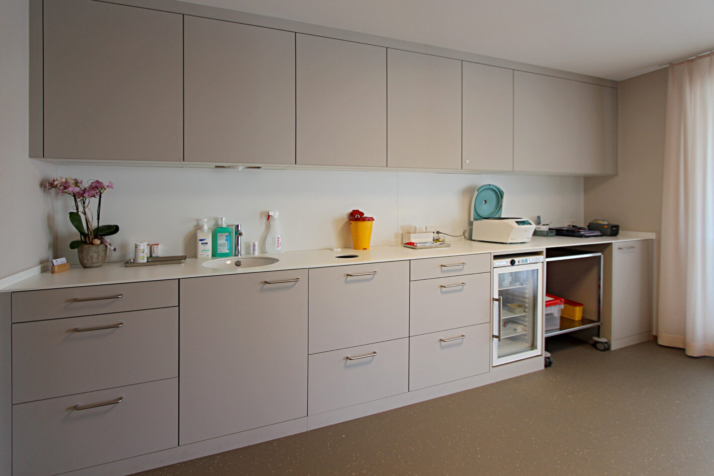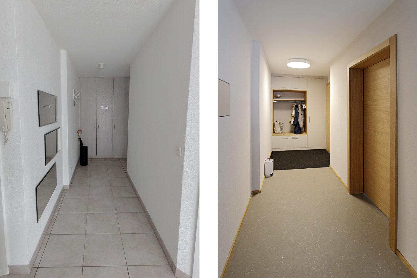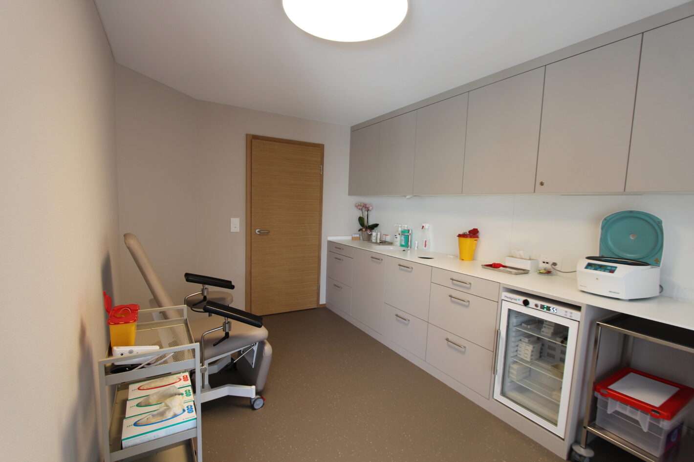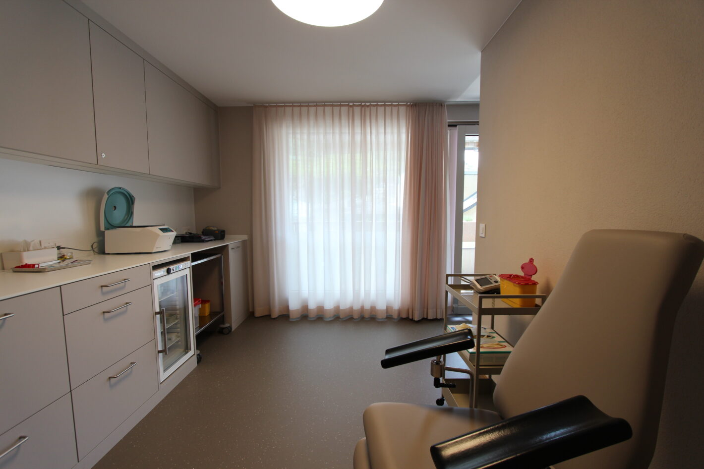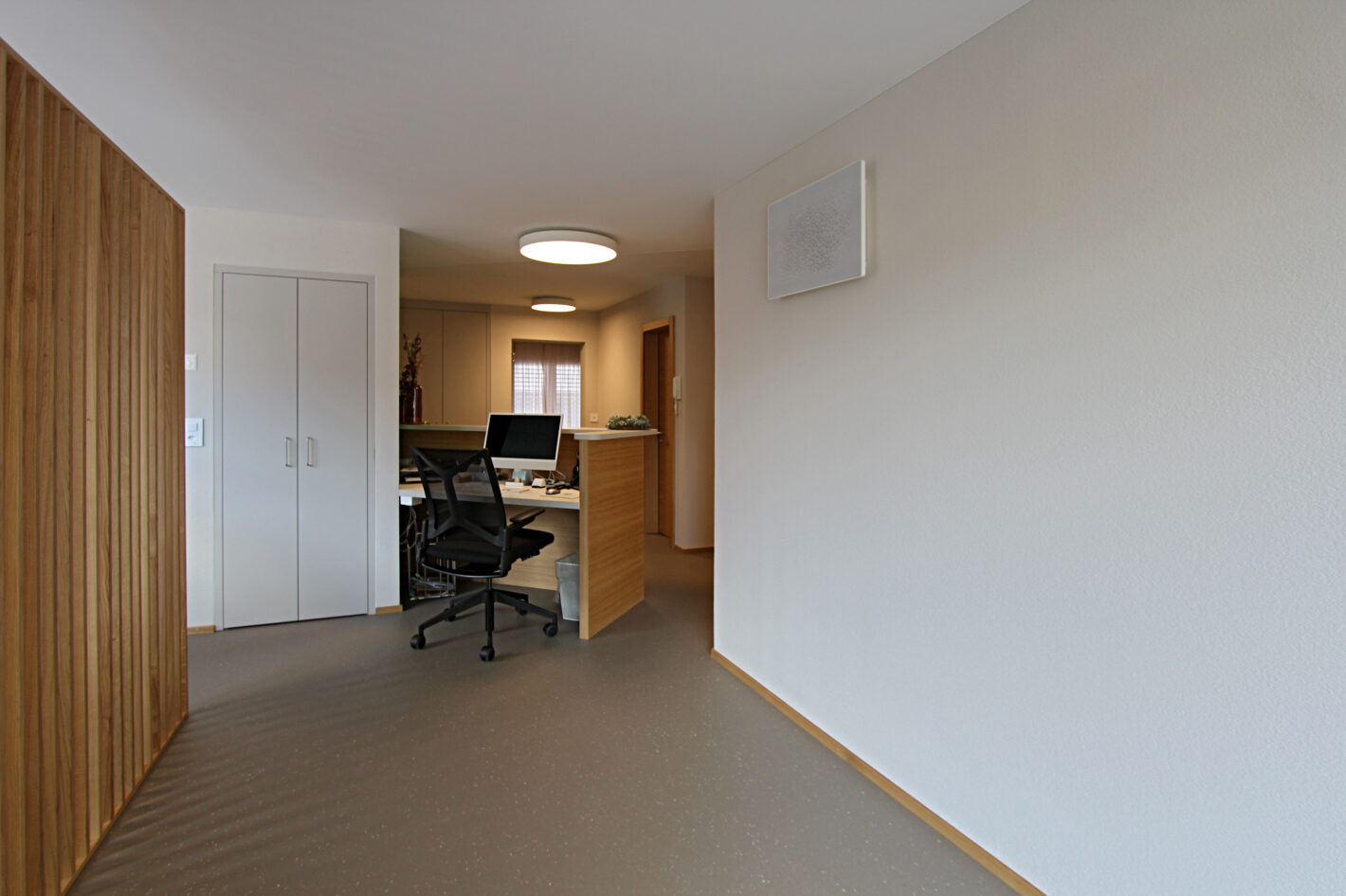 Eine alte Praxis in einem Mehrfamilienhaus in Visp wurde komplett neu renoviert. Die alten Möbel wurden komplett entfernt.Teils Wände wurden abgebrochen, teils neu erstellt und die Räumlichkeiten neu unterteilt, damit die Nutzung für die neue Praxis stimmt.